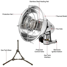 • Sisältää: Kaasulämmitin, muovinen pohja ja kotelo