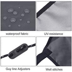 Aurinkokatos on valmistettu laadukkaasta ja kestävästä Oxford-kankaasta. Valmistettu vahvoilla metallikannattimilla ja tukevilla köysillä
