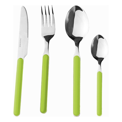 Smart ruokailuvälinesetti 4 hengelle BRUNNER, kauniissa limenvihreässä värissä.