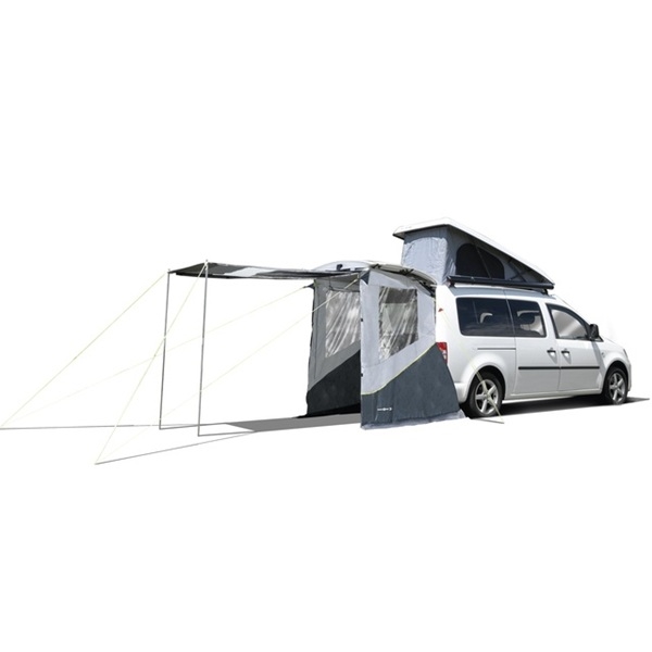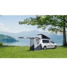 Tämä erityisesti suunniteltu perävaunuteltta sopii täydellisesti VW Caddy 5:een. 3 000 mm vesipilariarvo pitää sinut kuivana vaihtelevissa sääolosuhteissa. Joustava etuseinä voidaan rullata ylös tai käyttää aurinkosuojana.