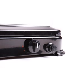 Lieden mitat ovat 58 x 33 x 9 cm ja kaasunpaine 30 mbar. Kaksi suurta poltinta, kukin 2200 wattia (Ø 10 cm), ja yksi pienempi, 1850 wattia (Ø 5,5 cm), tarjoavat joustavuutta ruoanlaitolla. Irrotettava ritilä helpottaa puhdistusta käytön jälkeen.