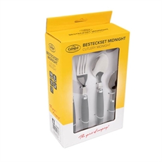 Fiksu ruokailuvälinesetti 6 hengelle osoitteesta Camp4, kauniissa mustassa värissä.