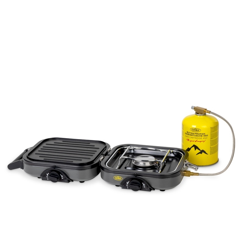• Pakkaus sisältää: liesi, 2 kattilaritilää, grillilevy, kaasukela