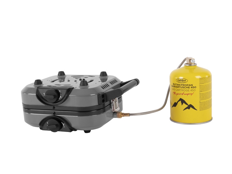 Tämä vapaasti seisova liesi kahdella polttimella painaa vain 2,8 kg, mikä tekee siitä kevyen kuljettaa leirintäalueelle tai festivaaleille. Pieni pakkauskoko 21,5 x 12,7 x 27,5 cm ja kätevä kahva tarkoittavat, että voit helposti pakata sen muun varusteesi kanssa. Kahden kattilaritilän ja yhden grillilevyn ansiosta saat joustavuutta valmistaa erilaisia aterioita – aamiaisesta illalliseen.