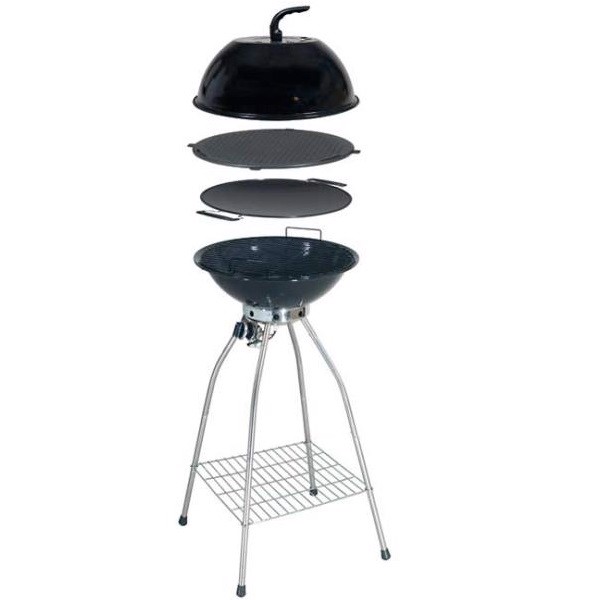 Toimituksen laajuus: Kaasugrilli, grilliritilä, grillilevy, Wok-pannu, grillikansi lämpömittarilla ja 2 kuljetussäkkiä.
