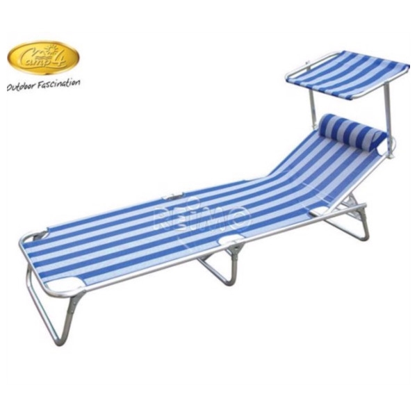 CARBEST Aurinkovuode Erittäin mukava aurinkovuode erittäin hyvässä laadussa. Huomaa kätevä aurinkosuoja, jota voidaan säätää tarpeen mukaan. Pehmustettu niskatyyny sisältyy hintaan. Selkänoja voidaan myös säätää 5 asentoon. Väri Sininen/valkoinen Materiaali: Texeline Mitat: P:186 x L:60 x K:30 cm. Kantavuus: Max. 120 kg. Kehys: Alumiini