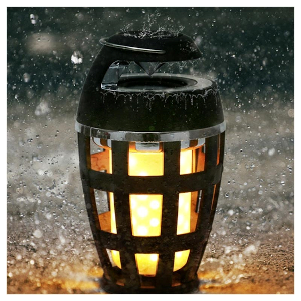 Kodikas LED-valo liekkiefektillä ja integroidulla Bluetooth-kaiuttimella.
