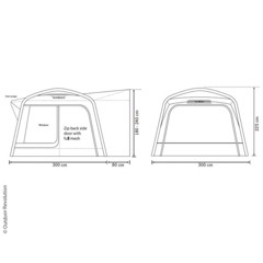 • Mitat: L:300 + 80 x S:300 cm x K: 225 cm. (liitoskorkeus 180-240 cm)