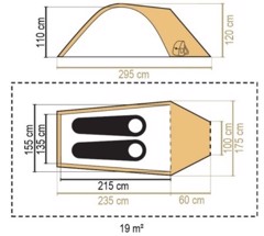 Teltta on 295 cm pitkä, 155 cm leveä ja sen seisomakorkeus on 110 cm, tarjoten riittävästi tilaa istua mukavasti ja vaihtaa vaatteet. Integroitu alumiinirunko mahdollistaa nopean pystytyksen, vaikka sää vaihtuisi nopeasti vuoristoalueilla. Materiaali on polyesteri 185T, joka kestää kulutusta ja varmistaa kestävyyden vaativissa olosuhteissa. Pieni katos sisäänkäynnin yli suojaa sateelta, kun riisut kengät.