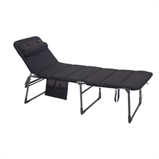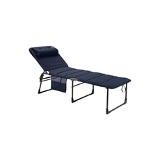 CRESPO Air-Deluxe Alu. on korkealaatuinen aurinkotuoli. Erittäin korkea ja leveä, säädettävä 5 asentoa säädettävällä pääpehmusteella, käytännöllinen sivutasku. Saatavana sinisenä tai mustana.