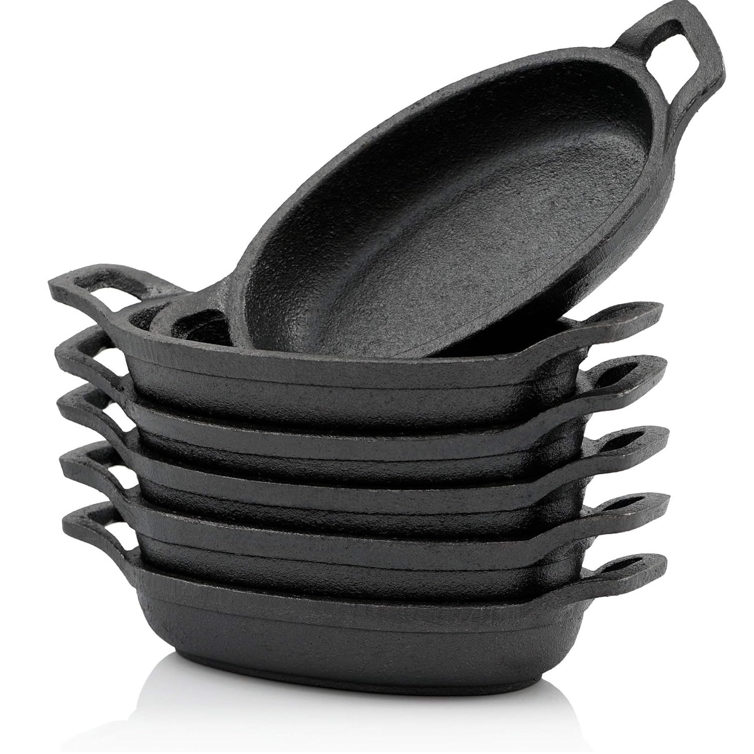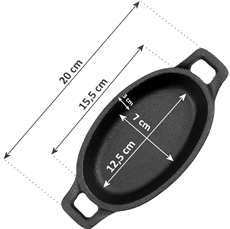 Tämä valurautapannu on lämmönkestävä ja sitä voidaan käyttää uunissa ja grillissä, mikä antaa sinulle joustavuutta eri ruoanlaittomenetelmiin. Valurauta varmistaa tasaisen lämmönjakautumisen, joten päivittäiset ateriat kypsyvät tasaisesti. Voit jopa käyttää pannua suoraan tulella tai hehkuvilla hiilillä, mikä tekee siitä ihanteellisen retkeilyyn ja piknikeille. Soikea muoto kahdella kahvalla mahdollistaa turvallisen käsittelyn sekä kypsennyksen että tarjoilun aikana.
