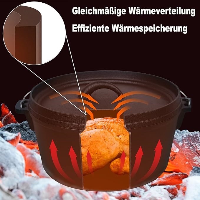 Tämä kattava keittiösarja yhdistää valurautaisen hollandilaisen uunin käytännöllisiin lisävarusteisiin monipuolista ruoanlaittoa varten. Valuraudan rakenne takaa tasaisen lämmönjakautumisen ja vakaan sijoittelun, mikä tekee siitä ihanteellisen sekä hitaaseen haudutukseen että nopeaan valmistukseen. Sarjaa voidaan käyttää kaikilla lämmönlähteillä, induktiosta nuotioon.