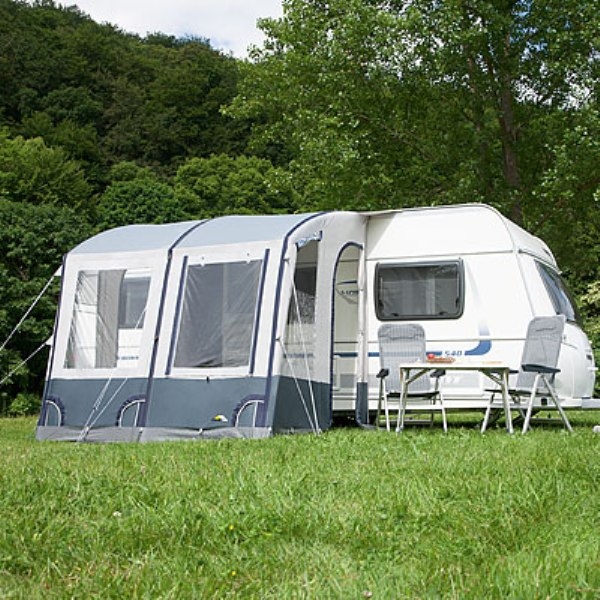 Yleiset laitteet: Kiinnitys asuntovaunun ulkopuolelle, hitsatut saumat, riittävät mahdollisuudet myrskynpuristukseen.