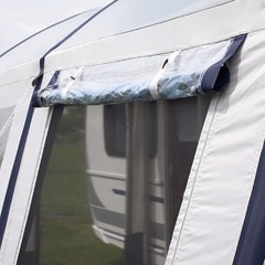 Sivuseinät: Suurella tuuletusikkunalla, ulkoisella suojuksella ja verholla sekä sivulle rullattavalla ovella; vetoketjut ovat piilossa. Suuret vaahtomuovikaulukset ja painetangot ovat saatavana lisävarusteena.