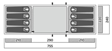 • Mitat: 755 cm pituus, 240 cm leveys, 205 cm korkeus