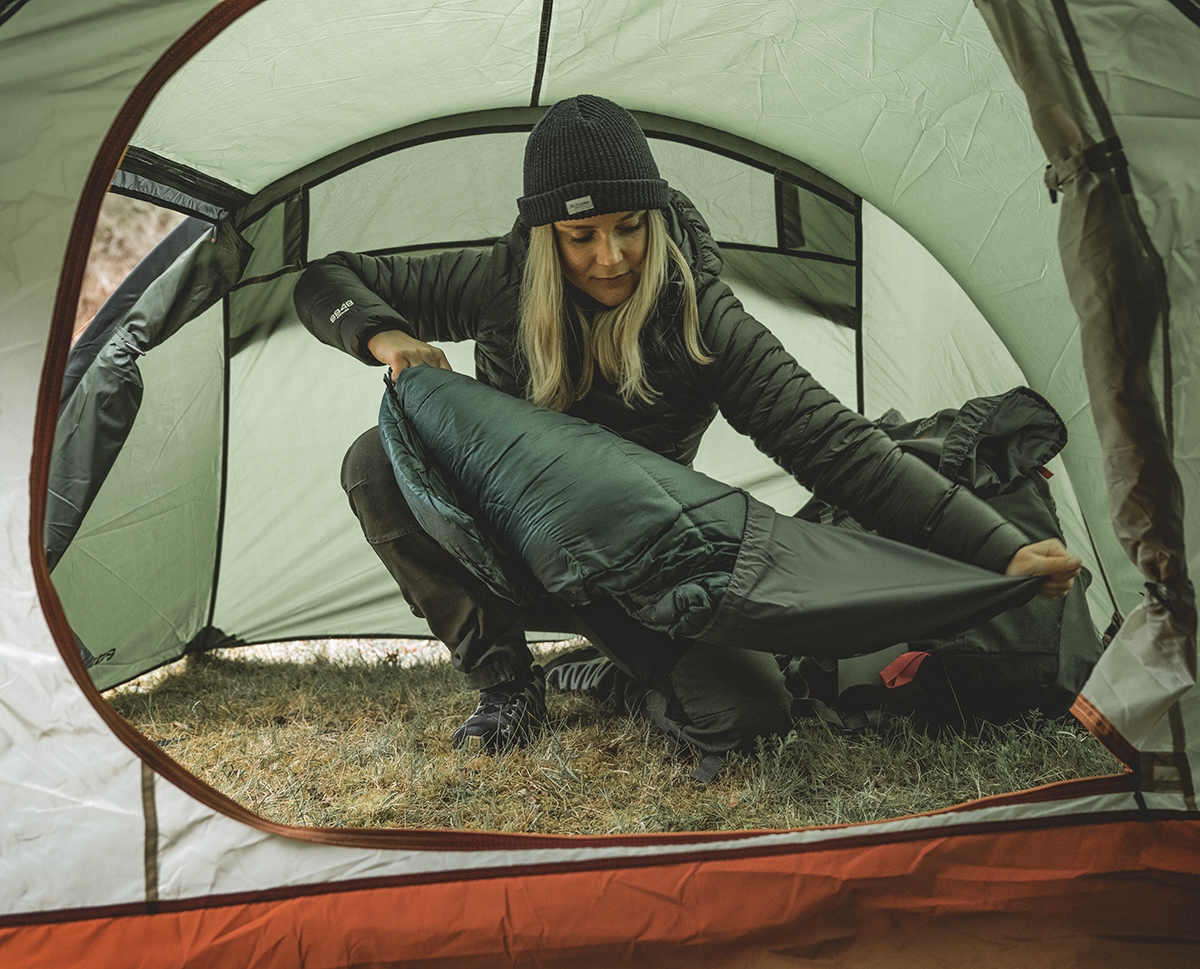 Easy Camp - Pasvik 3 erottuu tavallisista teltoista keskittyen vaelluksen ja pyöräretkeilijöiden erityisvaatimuksiin. Paino 3,2 kg ja kompakti pakkauskoko 46 x 16 cm tekevät kuljetuksesta hallittavan, vaikka pyörän tila olisi rajoitettu, koska teltta voidaan jakaa ja pakata eri laukkuihin. Vesitiivis kantolaukku on varustettu soljilla, jotka kiinnitetään suoraan pyörään, mikä poistaa tarpeen tasapainottaa teltta selässä. Tunnelimuotoilu tarjoaa vakautta tuulisella säällä, kun taas jaettu muotoilu makuutiloilla ja apsideilla luo toiminnallista tilaa sekä levolle, varusteille että käytännön toiminnoille. Vesitiiviys 3000 mm katteella ja 5000 mm teltan pohjassa suojaa sateelta, ja teipatut saumat estävät vedenpääsyn eniten altistuvissa kohdissa.