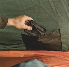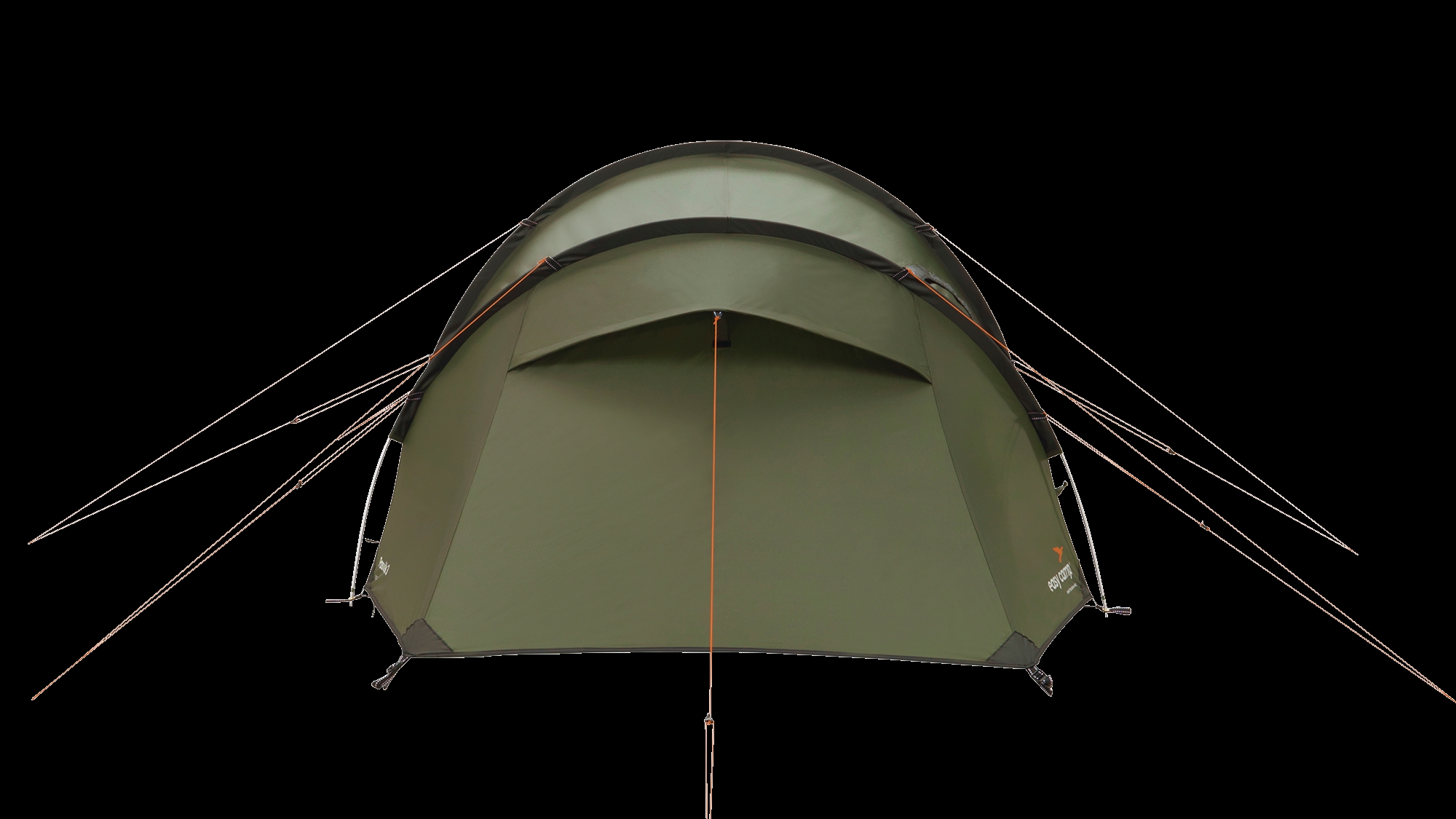 apsis-alue toimii suojattuna eteisenä makuutilan ja ulkomaailman välillä. Tänne voi tallentaa mudaiset kengät ja märät varusteet tuomatta niitä makuutilaan. Alue tarjoaa hyvän tilan ruoanlaittoon keittimen kanssa, päivinä jolloin sade pitää sinut sisällä. Ulkokangas on valmistettu palosuojatusta materiaalista parantaaksesi turvallisuutta ruoanlaiton aikana. Mukana tulevat 20 kiinnitystappia varmistavat, että rakenne pysyy vakaana, ja kun teltta pystytetään oikein, se kestää voimakkaat tuulenpuuskat kun sää todella vastustaa matkaasi... Ventilaatioreiät edessä ja takana luovat hyvän ilmanvaihdon, mikä vähentää kondensaatiota teltan sisäpuolella pidempien oleskelujen aikana.