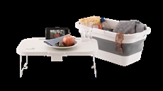 • Pakkaukseen sisältyy: kori, jossa on integroitu kansipöytä ja kantokahvat