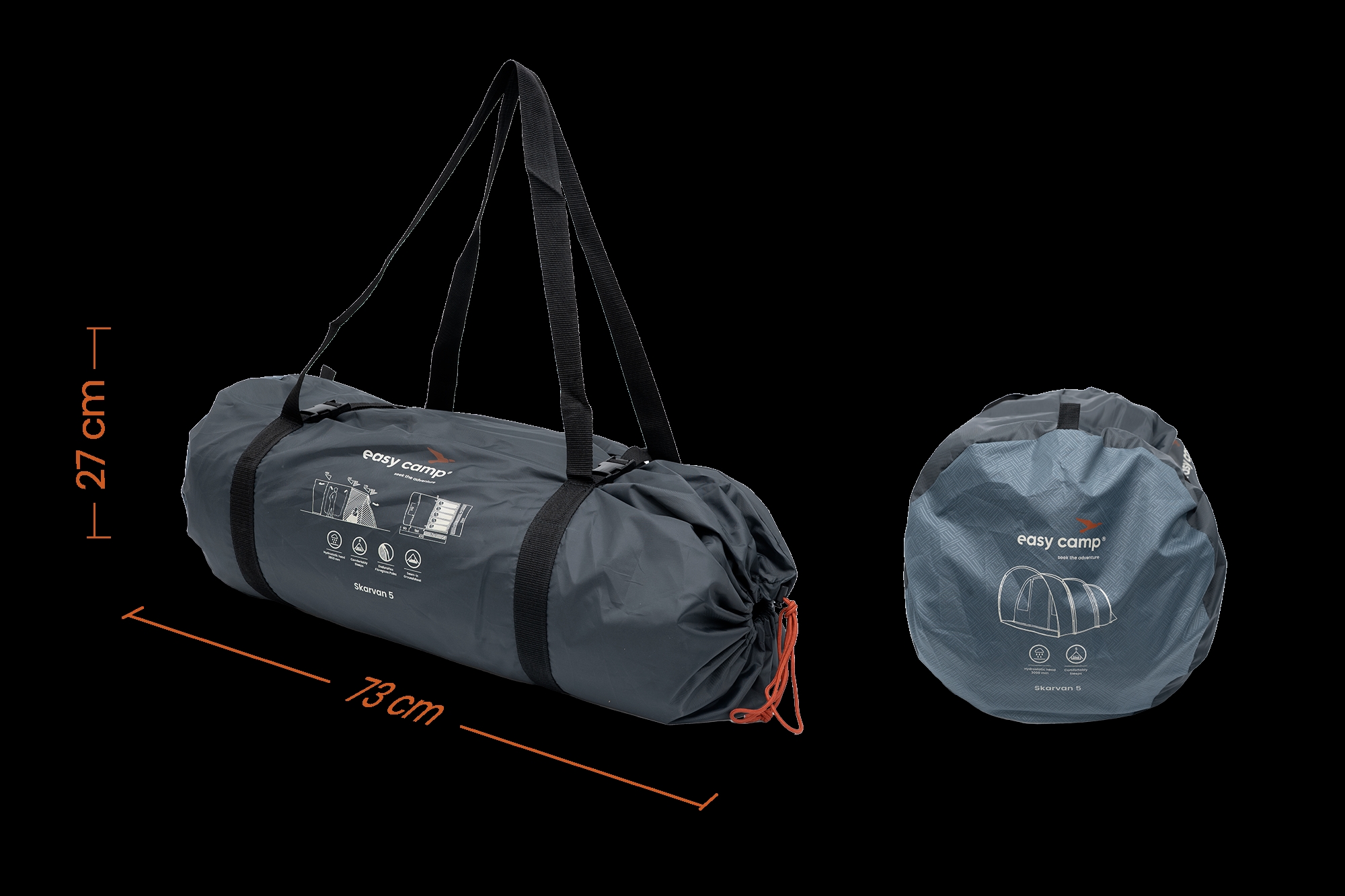 Tämä tunneliteltta tarjoaa tilaa 5 henkilölle jaettuna 2 makuuhuoneeseen ja tilavaan oleskelutilaan, jossa on 195 cm seisomakorkeus. Teltassa on 3000 mm vesipilari paine teipatuilla saumoilla, mikä suojaa tehokkaasti sateelta perheleirintämatkalla. Asennusaika on 9 minuuttia tangon ja tangon taskujen värikoodauksen ansiosta, joten on enemmän aikaa rentoutumiseen ja perheaktiviteetteihin. Ulkopäällinen on valmistettu WeatherGuard 3000, 190T polyesteri PU-päällystetty ja paloa hidastava, kun taas sisäteltta on hengittävästä polyesterista. Pohja on valmistettu kaksinkertaisesti päällystetystä, vedenpitävästä polyeteenistä. Teltan paino on vain 16,6 kg ja pakattuna sen koko on 73 x 27 cm.