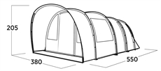 • Telttatyyppi: Tunneliteltta suunniteltu 6 henkilölle yhteensä
