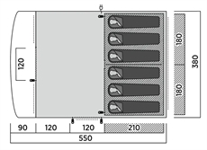 • Säilytys: Organisointitaskut oleskelutilassa ja sisäteltassa
