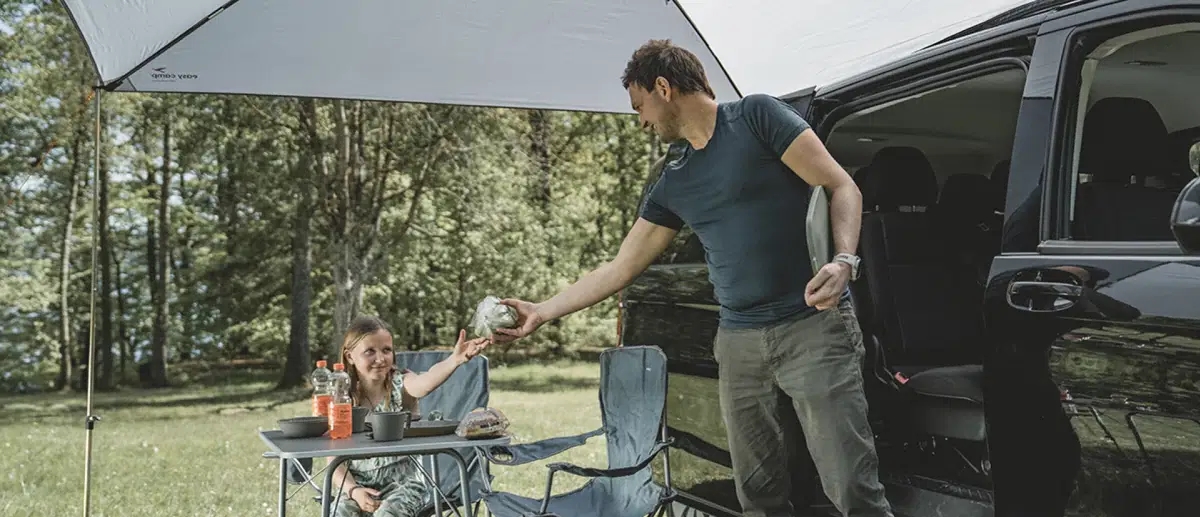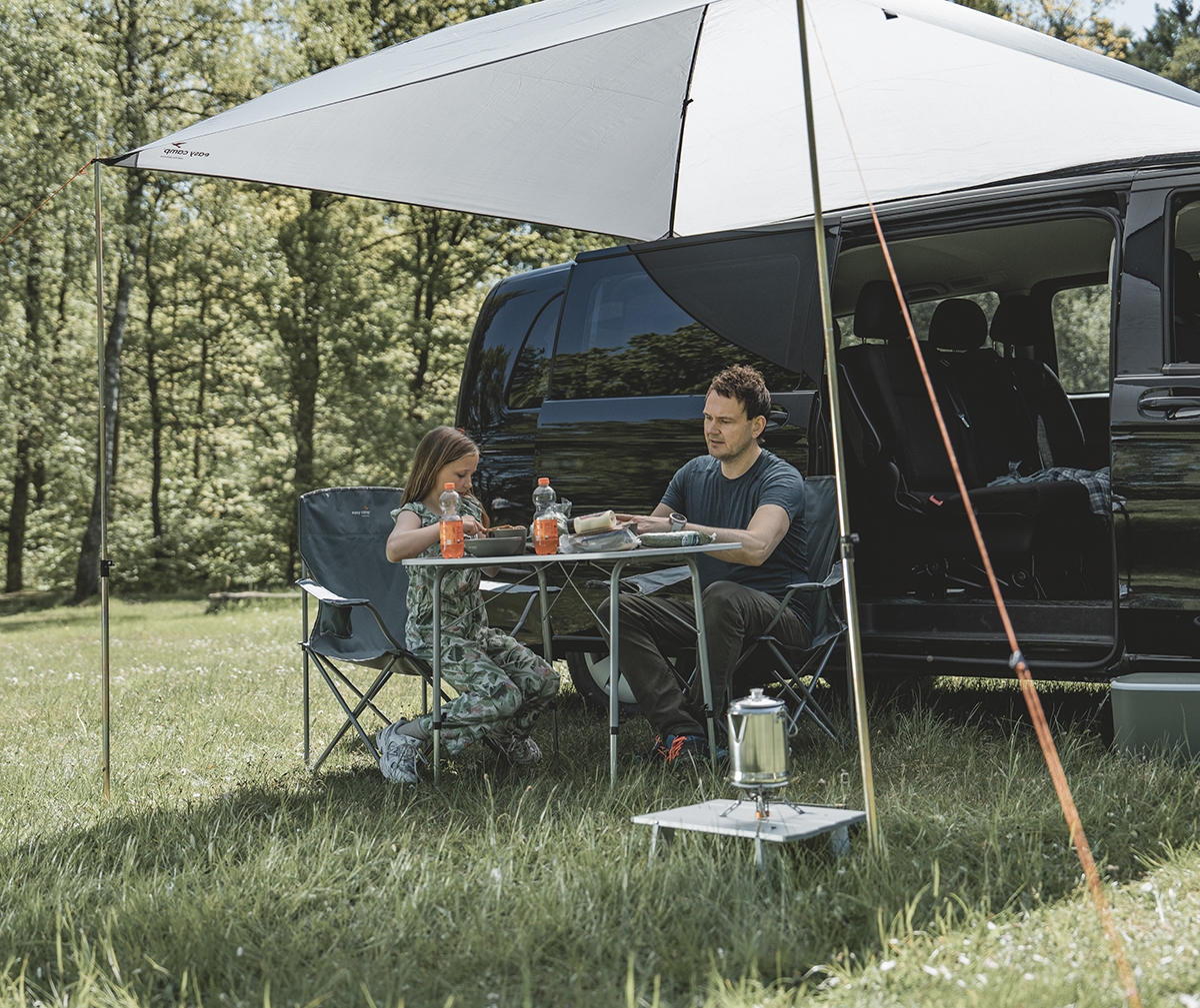 Easy Camp - Stryn Canopy Aurinkosuojus erottuu edukseen vesitiiveydellä 3.000 mm ja teipatuilla saumoilla, jotka tarjoavat vankan suoja sateelta pidemmillä leirintämatkoilla. Kuppimuoto varmistaa tehokkaan vedenpoiston katolta, joten vesilammikot eivät pääse muodostumaan. Kattoyhteyden pituus on 250 cm ja kiinnityskorkeus säädettävissä 150 - 260 cm välillä, joten aurinkosuojus sopii suurimpaan osaan matkailuautoista, pakettiautoista, asuntovaunuista ja pienistä matkailuautoista. WeatherGuard 3000 -materiaali on PU-pinnoitettu ja palonkestävää, samoin se on PFAS-vapaa ja vettähylkivä. Paino 3,9 kg ja kompakti pakkauskoko 74 x 10 x 10 cm tekevät kuljetuksesta ja säilytyksestä helppoa matkojen välillä.
