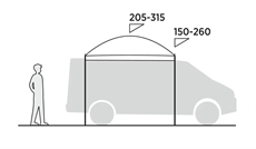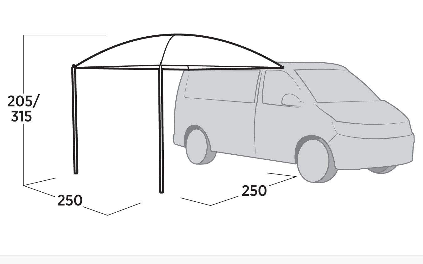 Monet leiriläiset kokevat, että aurinkosuojus ei joko sovi heidän tiettyyn ajoneuvoonsa, tai että vesilammikot kerääntyvät katolle sateen jälkeen. Kattoyhteyden pituudella 250 cm ja säädettävällä korkeudella 150 - 260 cm Stryn Canopy mukautuu erikokoisiin ajoneuvoihin. Kuppimuoto johtaa sadeveden pois, jotta materiaaliin ei kohdistu rasitusta. Asennus / Asennus tapahtuu joko teltan kiskoon, kattotelineisiin tai kiristysköydet katon yli.