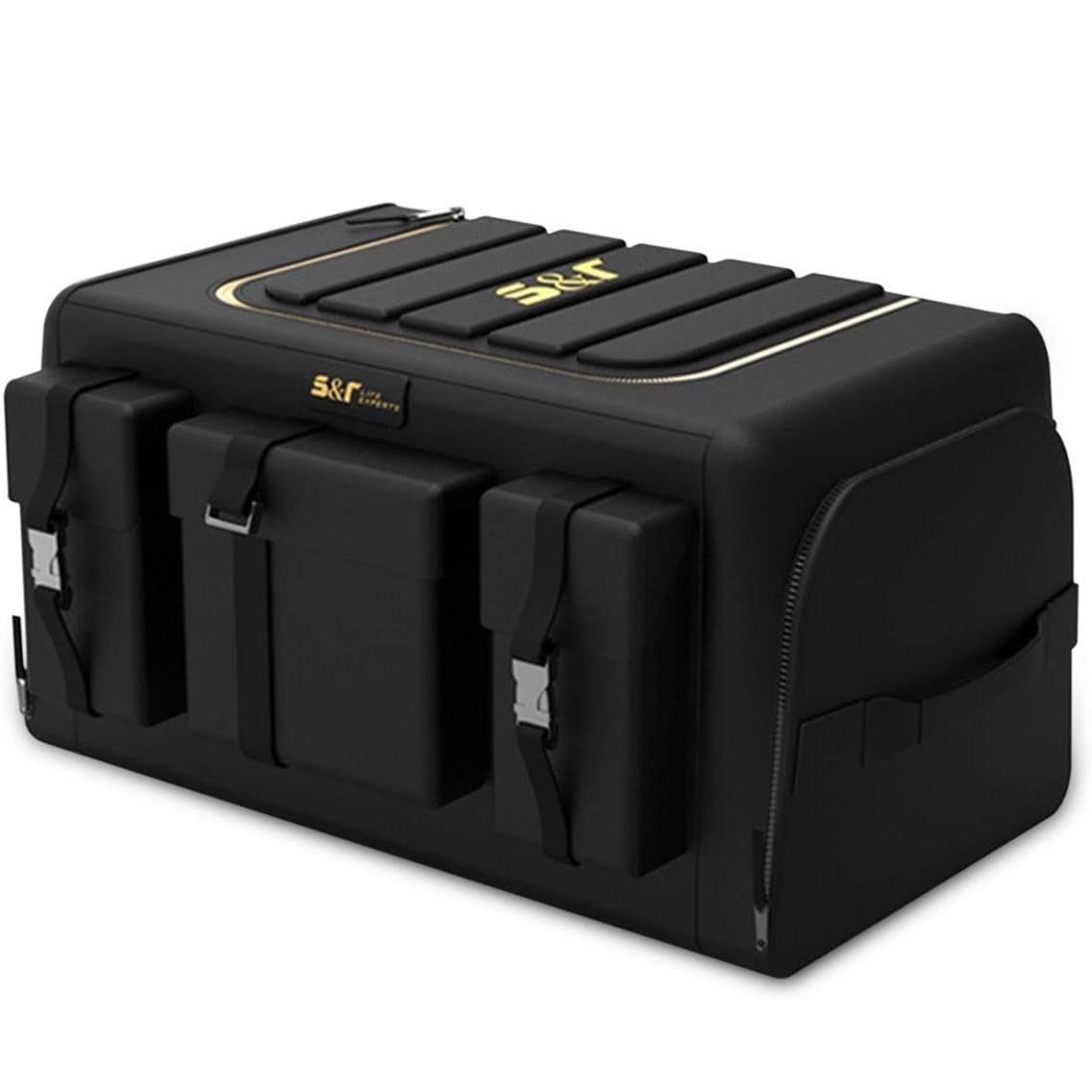 Tämän säilytyslaukun tilava 50 litran kapasiteetti tarjoaa tehokkaan tavaratilan järjestämisen. Vedenkestävä 1680D Oxford-materiaali ja liukumaton pohja varmistavat, että tavarasi pysyvät suojattuina ja vakaana ajon aikana. Laukku on rakennettu kolmitasoisella komposiittimateriaalilla maksimaaliseen kestävyyteen.