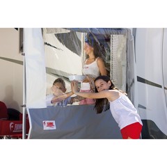 Sivuvarjo on valmistettu lahoamattomasta vinyylistä. Varjo on pestävä ja valmistettu UV-säteilyä kestävästä materiaalista. Sivukannessa on suuri ikkuna, jossa on rullaverho ja harmaa laajennus maahan. Saatavana vasen ja oikea versio.