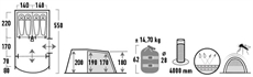 Ulkomitat: L: 450 x L: 260 x K: 180 cm.