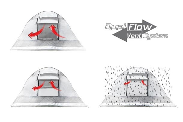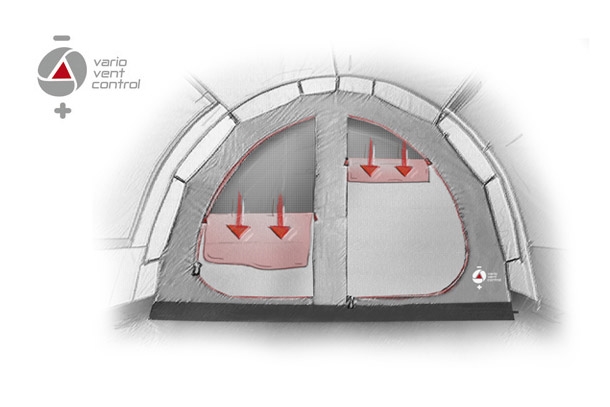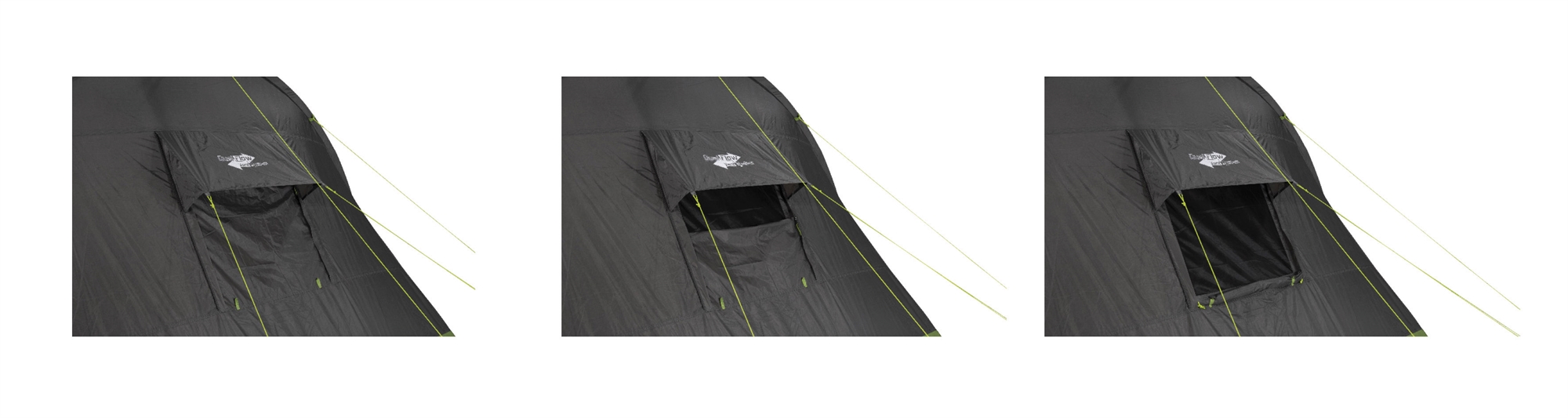 Pimennetty sisäteltta, jossa on 2 sisäänkäyntiä, on varustettu High Peak Vario Vent Control System -järjestelmällä.