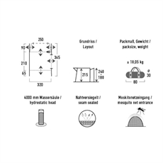 Ulkotelttaan ommeltu lattia estää lian, kosteuden ja ryömivien eläinten pääsyn telttaan ja suojaa vedolta.