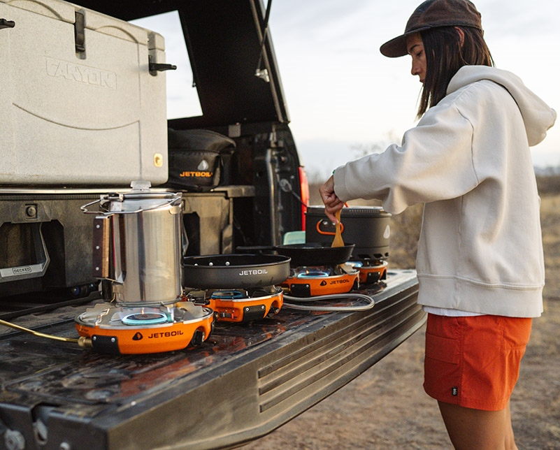 Järjestelmän paino on 4,1 kg ja mitat 52,1 x 24,9 cm taitettuna. Luotettava sisäänrakennettu kipinäsytytys varmistaa helpon käynnistyksen, jopa märällä säällä. Tuulisuoja optimoi polttoaineen kulutuksen ja suojaa liekkiä tuulelta, mikä on erityisen hyödyllistä pitkäaikaisessa ulkoilussa. JETBOIL JETLINKin avulla voit yhdistää useita polttimia ja jakaa saman kaasupullon. Tehokas isossa perusleirissä.