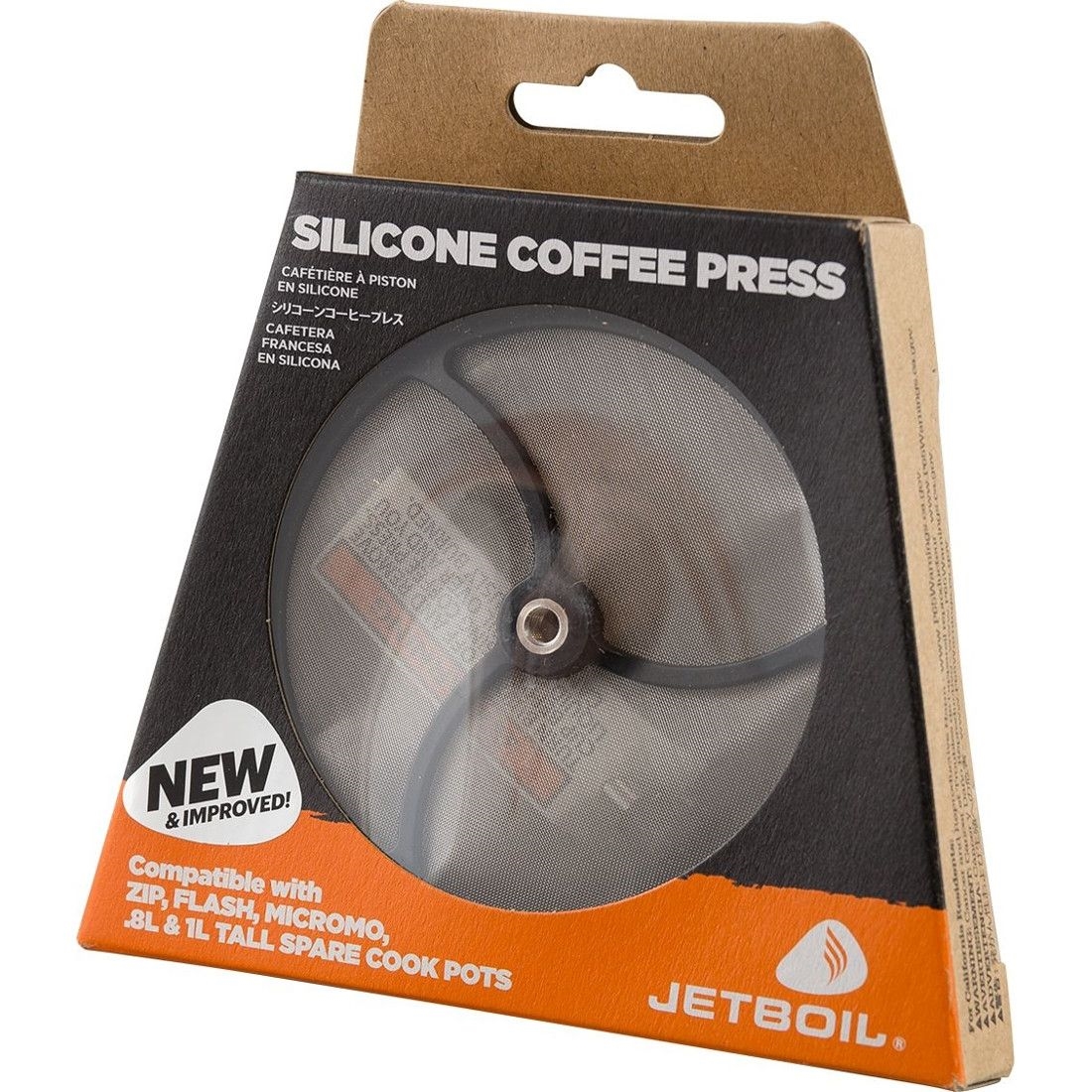 Valmistettu kestävästä ruostumattomasta teräksestä ja silikonista, joka takaa pitkän käyttöiän vaativissa olosuhteissa. Voidaan käyttää sekä kahville että teelle. Sopii JETBOIL Zip, Flash ja MicroMo sekä standardi Jetboil-järjestelmiin ja MiniMo:hon. Mitat: 95 x 148 mm.