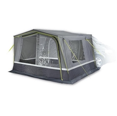 HIGH PEAK TRAMP 2.0 minibussi antaa sinulle joustavuutta verannan etuosan kanssa, jonka voi avata kokonaan tai osittain tarpeiden mukaan. Irrotettava pohja yhdistettynä PVC:hen suojaa tehokkaasti kosteudelta ja lialta, joten voit nauttia kuivista ja mukavista leirikäynneistä. Kahdella käytännöllisellä airlock-sivuovella pääset helposti ajoneuvoon ja suuren panoraamaikkunan kanssa verholla toisella puolella saat sekä hyvää ilmanvaihtoa että valoa teltassa.