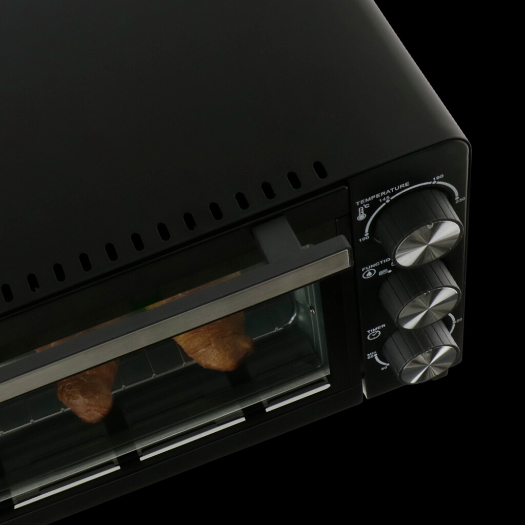 Uunin mitat 43 x 34,5 x 28,5 cm tekevät siitä helpon sijoittaa keittiötasolle, kun taas 6,5 kg paino tarkoittaa, että voit siirtää sitä pääasunnon ja vapaa-ajanasunnon välillä ilman vaivaa. Kaksinkertainen lasiovi estää lämpöhäviön ja pitää ulkopinnan viileämpänä koskettaa. Ylikuumenemissuoja varmistaa turvallisen käytön, vaikka et jatkuvasti valvoisi uunia.