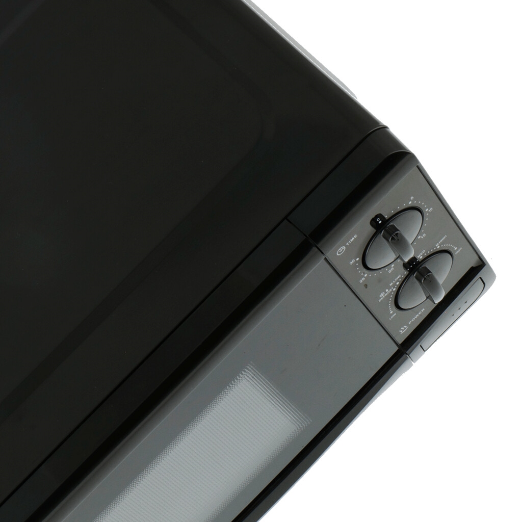 Mikroaaltouunin mitat ovat 45 x 32 x 26 cm, mikä tekee siitä riittävän kompaktin rajallisiin keittiötiloihin samalla kun se tarjoaa riittävän kapasiteetin päivittäiseen käyttöön. Kaksi kääntönuppia tekevät käytöstä yksinkertaista ja nopeaa – toinen hallitsee tehoa, toinen ohjaa aikaa. Tämä yksinkertainen muotoilu varmistaa, että kaikki voivat käyttää mikroaaltoa vaivatta, oli se sitten kotikäytössä tai kiireisellä työpaikalla.