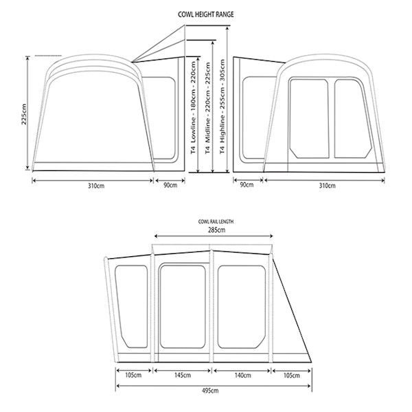 MOVELITE 4 on itsenäinen ilmateltta, joka on suunniteltu nopeaan pystytykseen. Tämä korkealaatuinen puhallettava teltan etuteltta on valmistettu uudelleen kehitetystä hengittävästä materiaalista, joka voi tarjota miellyttävän sisäilmaston ja vähentää kondensaatiota minimiin. Suuret ikkunat verhoilla voivat luoda valoisan ja ystävällisen ympäristön, kun taas sivuovet hyttysverkolla pitävät hyönteiset ulkona. Kiinteä lattia ja ylimääräinen ilmaputki katossa voivat lisätä vakautta. Kaksoishelma, ø5 + ø7 mm, mahdollistaa helpon asennuksen asuntovaunuun tai matkailuautoon.