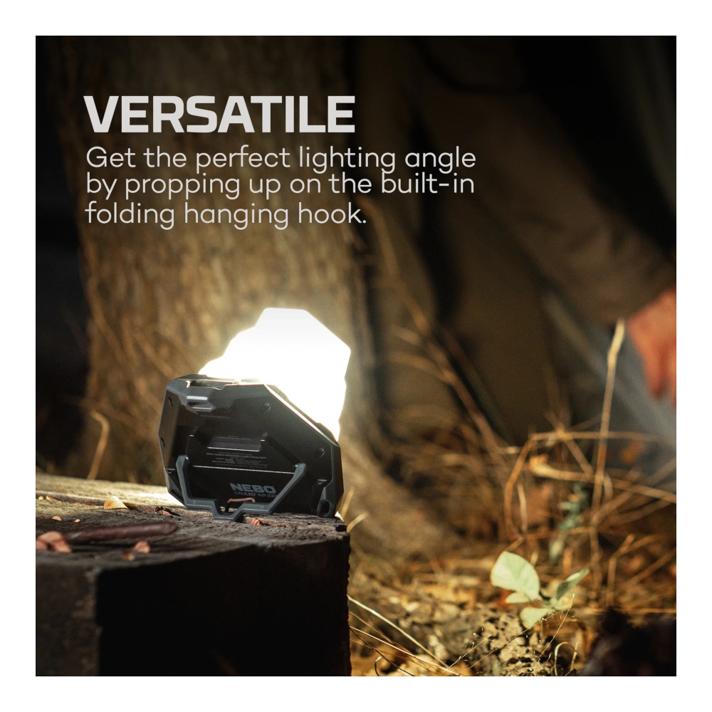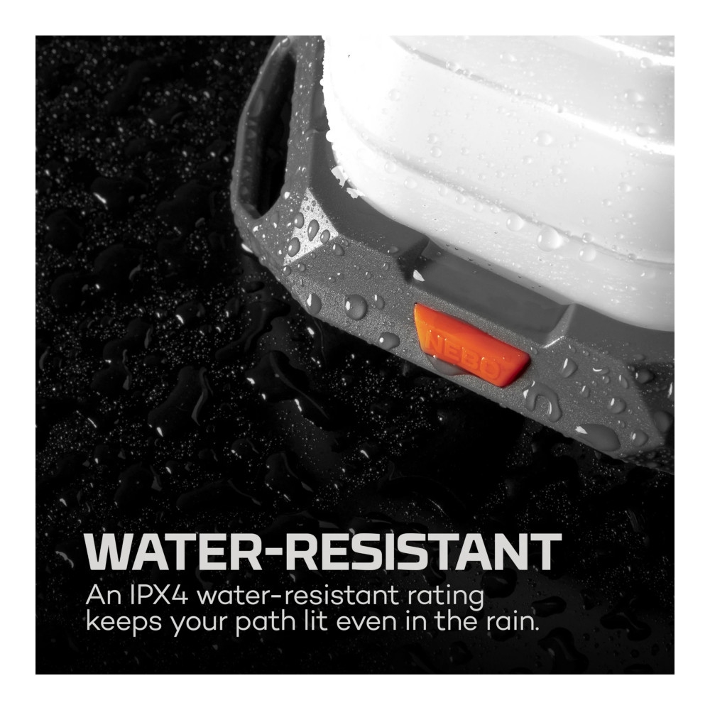 NEBO Galileo Air 1000 Lumens on ihanteellinen ulkoiluaktiviteetteihin tai hätävalaistuksena. Kulmikas rakenne mahdollistaa tehokkaan valaisun ja kompaktin säilytyksen. Lyhty voi tarjota jopa 10 tuntia valaistusta matalimmalla asetuksella. Oranssi painike pohjassa helpottaa käyttöä pimeässä ympäristössä ja voi aktivoida Direct-to-Red-toiminnon välittömään punavaloon. Eteen sijoitetun ON/OFF-painikkeen avulla käyttäjä voi helposti kytkeä lyhdyn päälle ja pois haastavissakin olosuhteissa. Mukana tuleva USB-C – USB-latauskaapeli varmistaa, että lyhty voidaan aina ladata, missä ikinä olekin. Tämä tekee NEBO Galileo Air 1000 Lumensista luotettavan kumppanin telttailuun, patikointiin tai hätävalaistuksena kotona. Vain 285 gramman painoisena ja IPX4-vedenkestävänä ominaisuutena tämä lyhty kestää erilaisia sääolosuhteita ja on helppo kuljettaa. Se voi myös toimia varavirtalähteenä mobiililaitteille powerbank-toimintonsa ansiosta, mikä tekee siitä monipuolisen työkalun ulkoilmaharrastajille.