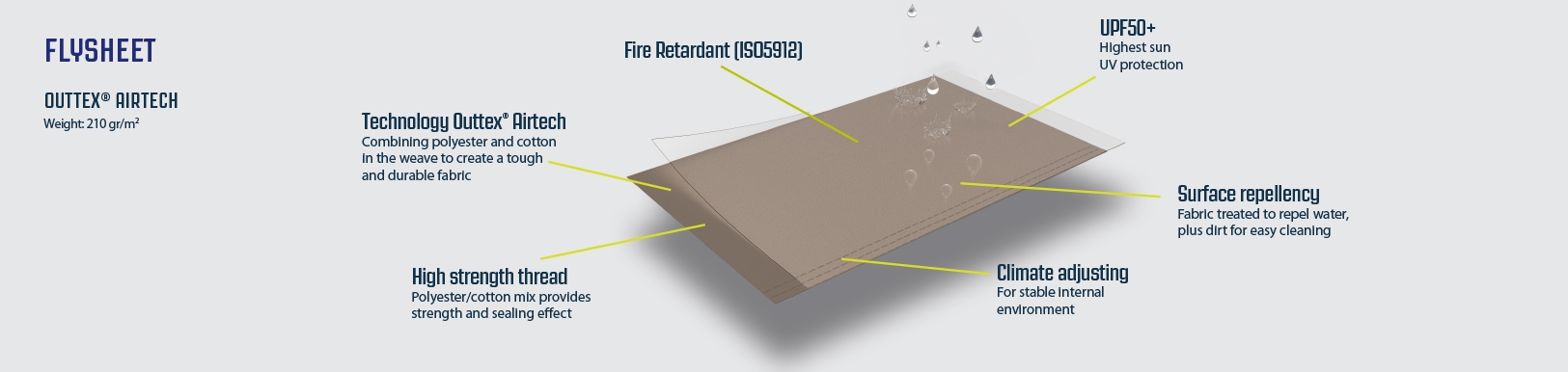 • Ulkoteltan materiaali: Outtex Airtech, 65% polyesteriä ja 35% puuvillaa