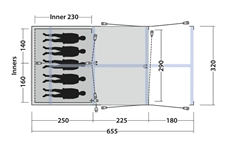 • Valaistus: Integroituna Outwell Light System himmennettävällä toiminnolla olohuoneessa