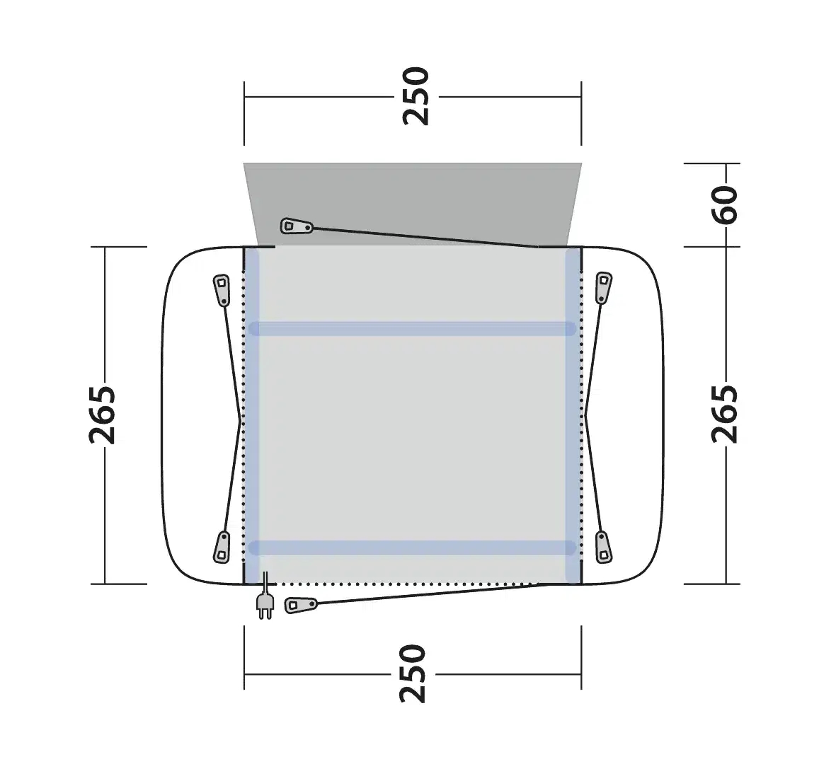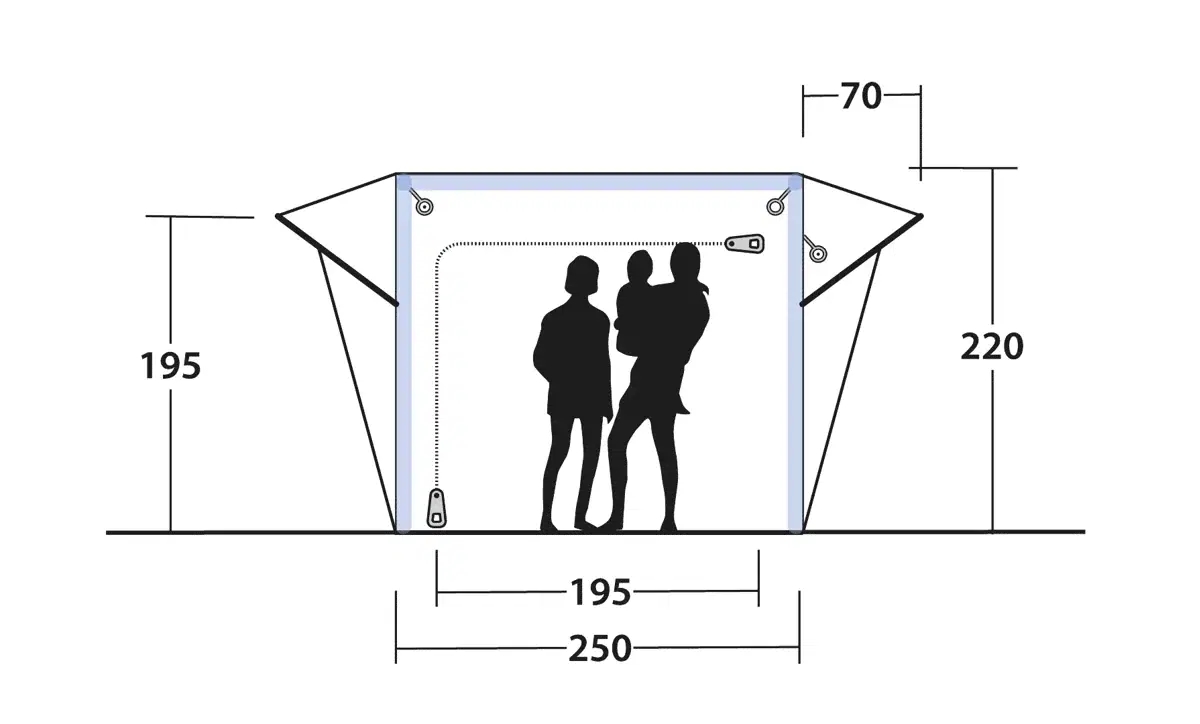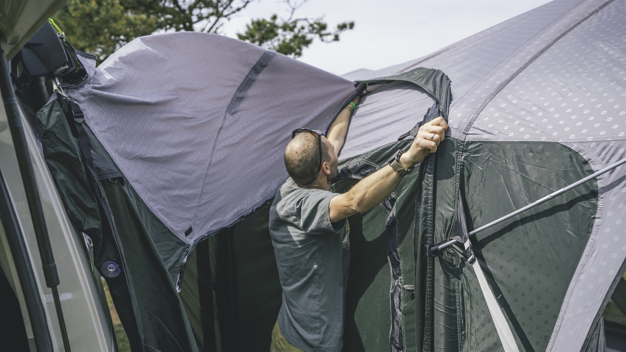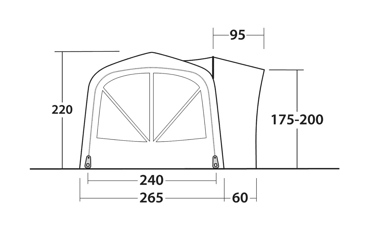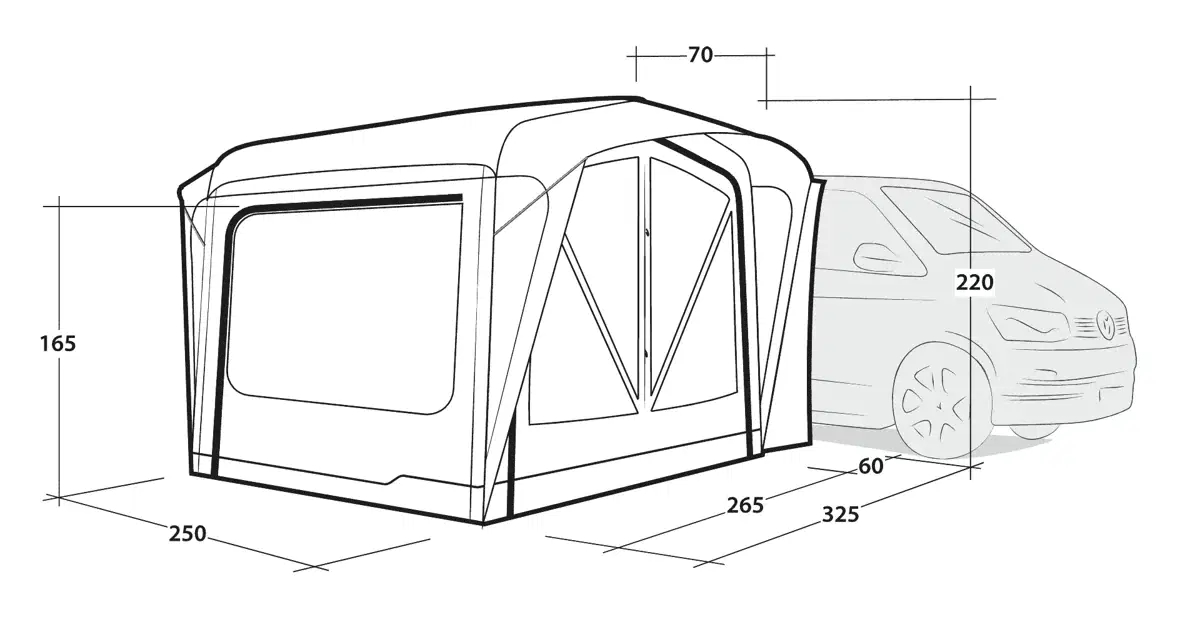 OUTWELL Cross PowerAir Drive-away on suunniteltu leiriytyjille, joilla on matkailuautoja ja muunnettuja pakettiautoja, ja jotka etsivät sekä lisätilaa, joustavuutta että luotettavaa säänsuojaa. Teltan drive-away-ominaisuus tarjoaa vapauden tehdä päiväretkiä ilman, että koko leiriä tarvitsee purkaa. Power Air System vähentää merkittävästi pystytysaikaa ja parantaa vakautta tuulisella säällä. Kiinnityskorkeus 175-200 cm ja kattoliitännän pituus 250 cm sopivat useimpiin matkailuautoihin ja muunnettuihin pakettiautoihin. Kestävällä Outtex® 6000 Express RS-polyesterillä päällystetty pressu yhdistettynä 6.000 mm vedenpitävyyteen takaa suojan rankkasateelta. Materiaali on PFAS-vapaita ja tarjoaa UV-suojan UPF 30+, mikä antaa sekä terveydellistä turvaa että pidentää teltan käyttöikää.