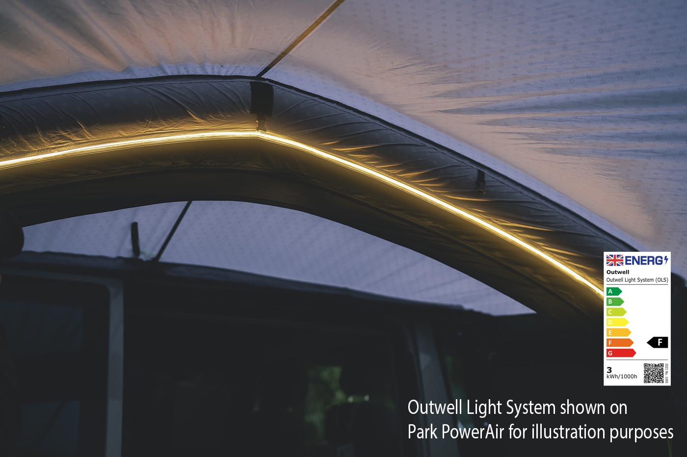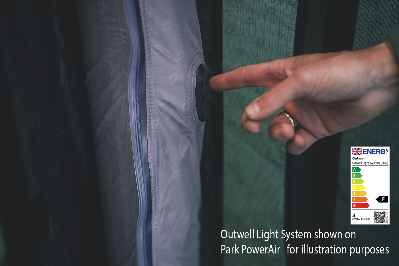 - Integroitu Outwell Light System, jossa virtalähteenä esimerkiksi virtapankki
