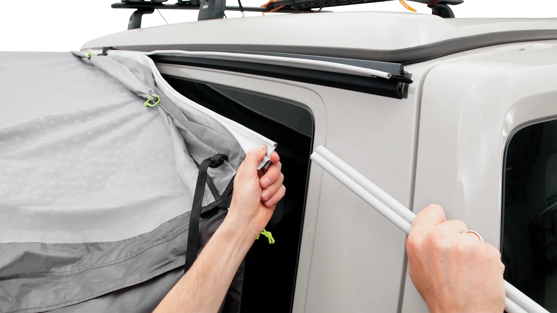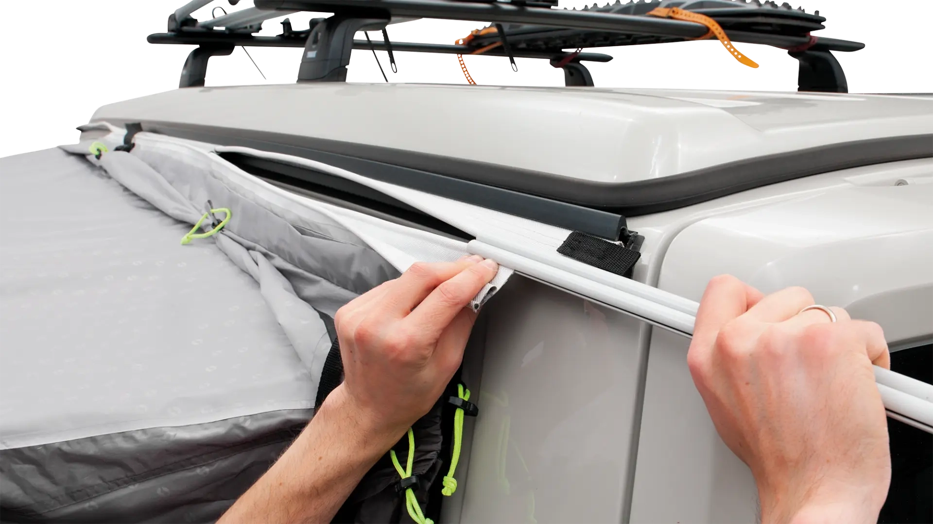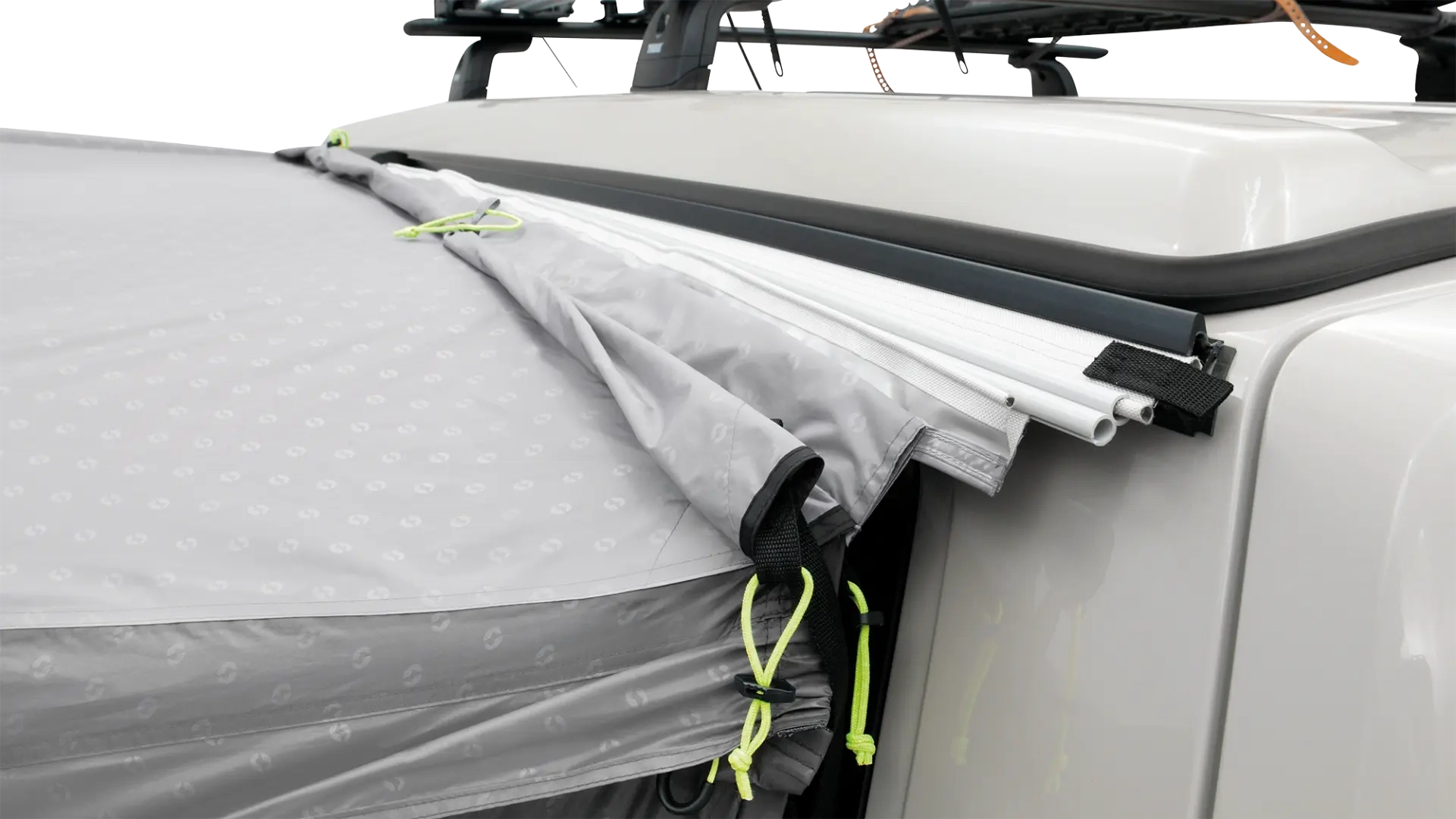 Jos vaihdat eri kiskojärjestelmien välillä leirintäretkilläsi, tämä kaksoisteltta-adapteri tarjoaa joustavuutta mukauttaa telttaa eri kokoonpanoihin. Kaksoisvulst-nauha, jonka pituus on 270 cm, ja liitäntäkanavat, joiden pituus on 90 cm, takaavat useita kiinnityspisteitä, mikä antaa vakaan yhteyden teltan ja ajoneuvon välillä haastavissa sääolosuhteissa.