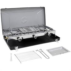 Vankka rakenne painikkeiden sinkkiseoksella takaa pitkän kestävyyden intensiivisessä käytössä. Kolmen erillisen polttimen kokonaisteho 3 x 1500 W antaa täyden hallinnan ruoanlaitossa. Kaasupoltin on varustettu turvallisella liitännällä standardi kaasupulloihin ja käytännöllisellä tuulisuojalla. Irrotettava grillilevy rasvapelillä tekee puhdistuksesta helppoa ja nopeaa käytön jälkeen. Jos arvostat tehokkuutta ja monipuolisuutta ulkokeittiössäsi, arvostat tämän kaasupolttimen kykyä käsitellä erilaisia ruoanlaittotehtäviä samanaikaisesti. Vakaalla rakenteella luistamattomilla kumijaloilla saat mielenrauhan, riippumatta siitä, teetkö ruokaa leirintäalueella tai takapihassa. Paloaika 55 minuuttia per 100 g kaasua ja keittoaika 8:07 minuuttia per litra vettä antavat luotettavan suorituskyvyn kaikkiin ruoanlaittotarpeisiisi.