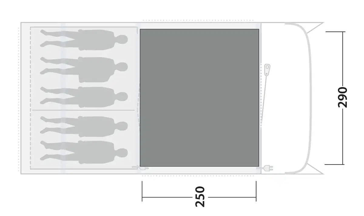 Matto soveltuu pitkäaikaiseen leirintään pehmeiden ja kestävien materiaalien yhdistelmän ansiosta. Neljä kulmakiinnikettä pitävät maton tukevasti paikallaan, jopa teltan vilkkaassa käytössä. Käytännöllinen muotoilu tekee siitä helpon rullata integroitujen mustien kantohihnojen avulla, mikä säästää tilaa kuljetuksen aikana. Materiaali on sekä vankkaa että miellyttävää kävellä, ja näkyvä siksak-kuvio antaa teltalle kutsuvan ilmeen. Matto on erityisesti sovitettu Florida 5 Air -telttaan, mikä takaa ihanteellisen istuvuuden ja maksimaalisen mukavuuden koko leirintäoleskelun ajan.