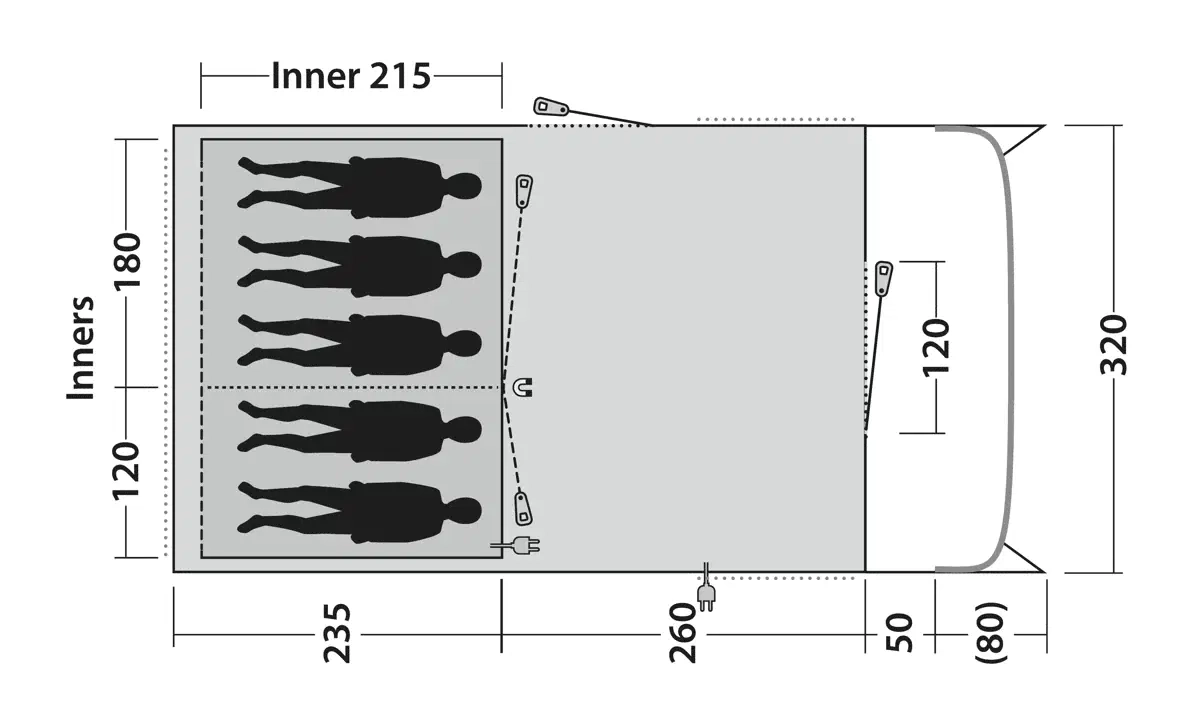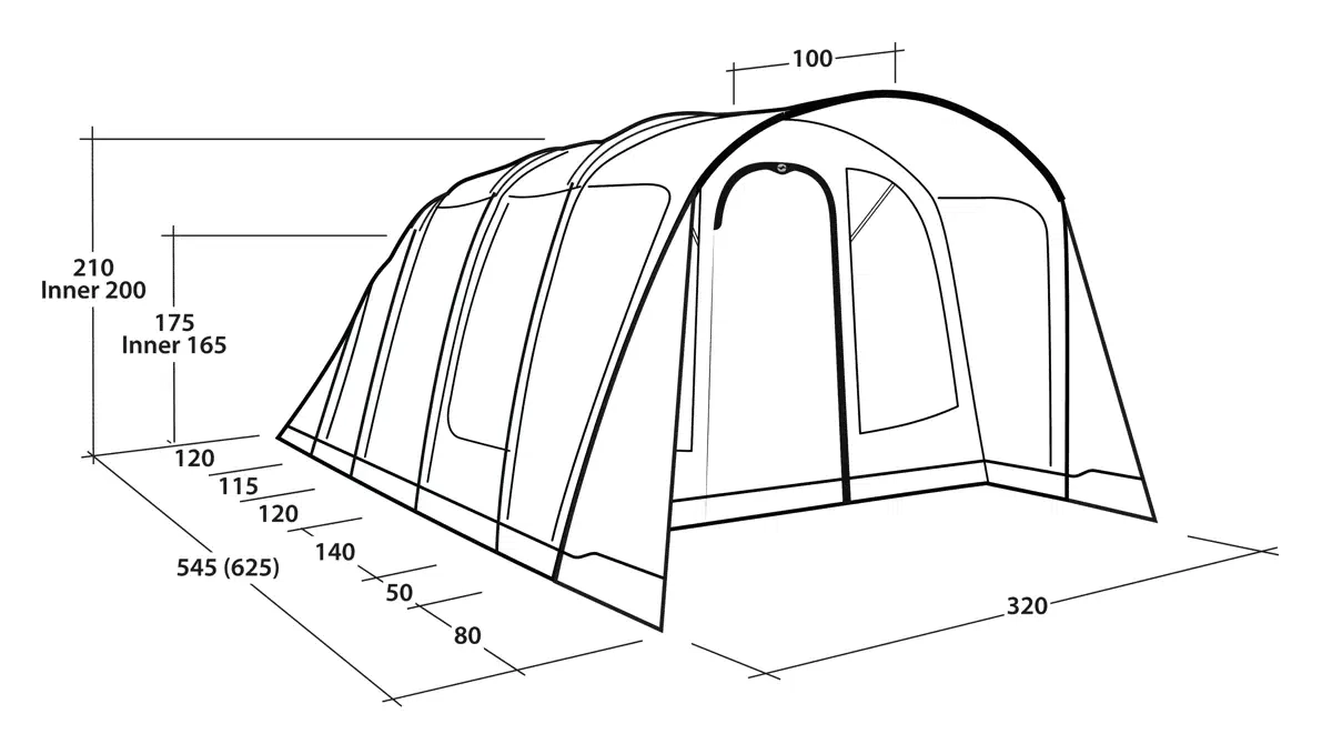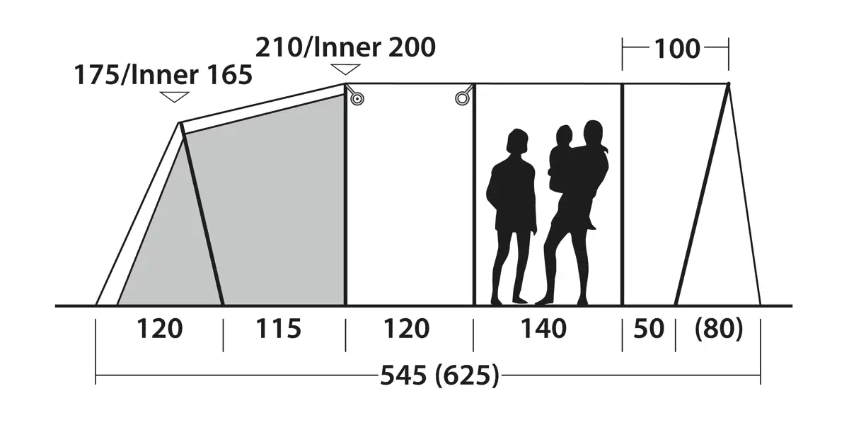 • Telttatyyppi: Kolmen huoneen tunneliteltta kahdella makuukammiolla