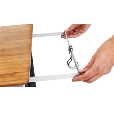 Kaappi on valmistettu kestävästä alumiinista ja 300 x 600D kaksivärisestä polyesteristä Shadow Greyssä. Vankka bambulevy päällä tarjoaa käytännöllisen työskentelytilan. Kaapin paino on vain 9 kg, joten sitä on helppo käsitellä, ja se vie minimaalisesti tilaa taitettuna.