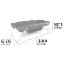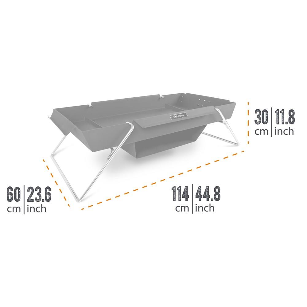 Pitkä muoto, jonka mitat ovat 30 × 114 × 60 cm, tarjoaa hyvän tilan useille tulille ja eri ruoanlaittomenetelmille. Yhdistä tulipata kanssa Petromax Fire Bridge saadaksesi parhaan lähtökohdan ulkoruokailullesi. Paistokammion sisämitat ovat 11,4 × 46,5 × 35,5 cm ja se on mitoitettu Petromax Fire Skilletsilta FP15 - FP30, Grill Fire Skillet GP35-T sekä Loaf Pans K4 - K8 (ilman kantta). Tämä joustavuus tekee Fire Troughista monipuolisen ulkokeittiön