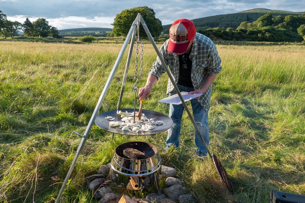 Petromax - ROIKKUVA GRILLITARJOTIN Vikingepannu Kolmijalka Päällä Nuotio